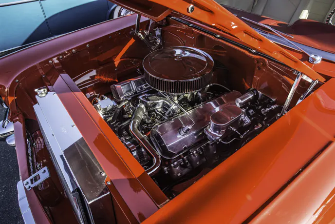 The drivetrain is also setup just a little bit differently from when Dave got it. Although it retains its original straight-6 motor, the tri-powering off of a 1954 Corvette is something Dave added. He also put in a close-ratio 5-speed manual transmission out of a Camaro in place of the original 3-on-the-tree transmission.