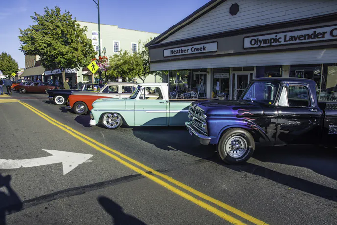 We attended the inaugural Sequim Prairie Nights car show on Saturday, August 19th, up in Sequim, Washington. For those of you that aren’t familiar with the area, Sequim is so far north in the state that it boarders the Straight of Juan De Fuca and sits in the rain shadow of the nearby Olympic Mountains. They see only a fraction of the rain the rest of the region does. while Seattle is sopping wet, the residents of Sequim are likely out enjoying the sunshine.