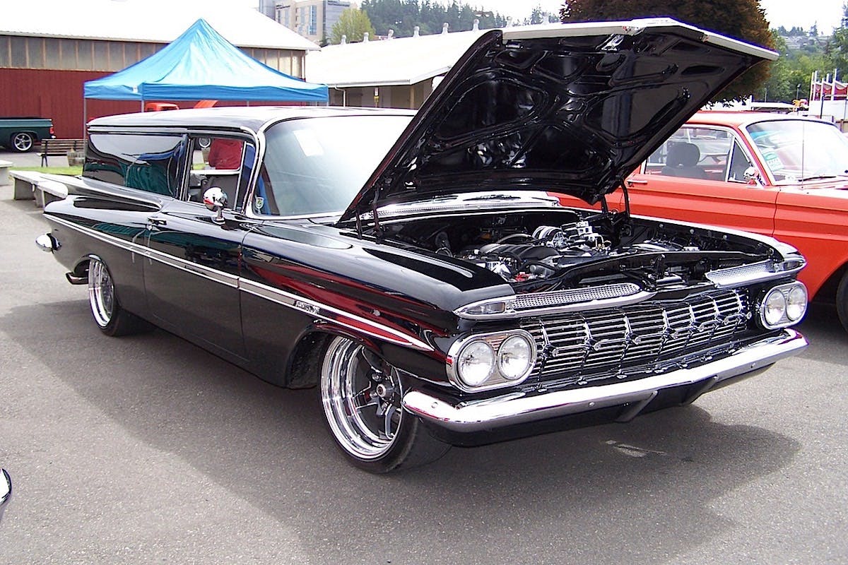 About as different as you can get from the Vicky, this ’51 Plymouth Wagon has been in the Davis family’s stable for more than a decade, and its 392 Hemi is coupled to a 350 Turbo transmission for a smooth, trouble free cruiser that turns heads wherever it has gone. It’s not your eyesight that’s askew, it’s the 3″ chop and slant to the roof that makes you wonder and gets the looks.