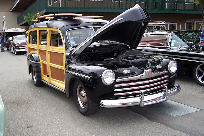 About as different as you can get from the Vicky, this ’51 Plymouth Wagon has been in the Davis family’s stable for more than a decade, and its 392 Hemi is coupled to a 350 Turbo transmission for a smooth, trouble free cruiser that turns heads wherever it has gone. It’s not your eyesight that’s askew, it’s the 3″ chop and slant to the roof that makes you wonder and gets the looks.