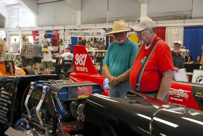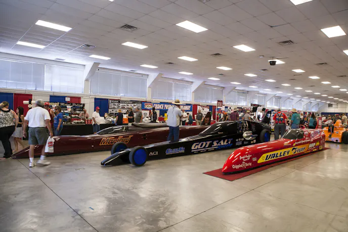 Some of the amazing racers on hand included John Sprenger’s (AA/BGL—324.961 mph) “Got Salt” Lakester, Bob Dalton’s “Flash Point” streamliner, Ken Puccio’s (3000-S-BF 376.363 mph) “Ack Attack” M/C Streamliner, Tom Walsh’s (AA/BstR 232.621 mph, A/BstR 241.327 mph, B/BstR 241.137 mph) “Walsh & Walsh” Street Roadster, and Michele Brading’s (K/FL 175.405 mph, K/GL 181.696 mph) Costella-Dennee Lakester.