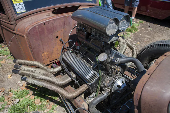 Watts named it the “Sewer Pickle” because it “looks sort of like a turd on the outside.” No candy paint, no clear coat, or other show car finish. But don’t be deceived by the lackluster exterior, a lot of work went into the appearance. He even named the custom paint color Turd Green.