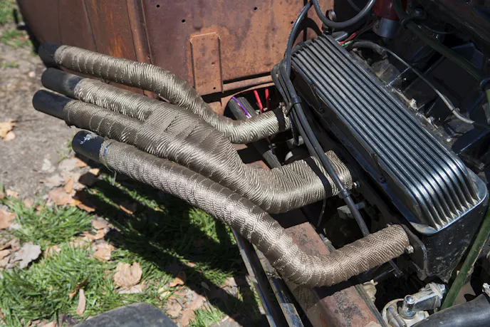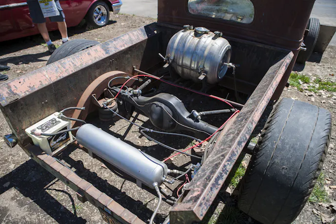 The remapped ECU allows you to cruise using only 4 or 6 cylinders, depending on throttle position, for better gas mileage and economy. Stopping the Ford comes quickly thanks to 14-inch front and 12-inch rear Wilwood disc brakes. A custom front suspension had to be made since Watts did not want the typical straight axle in the front. This includes his custom fabricated tie rods, control arms, and coil over suspension.