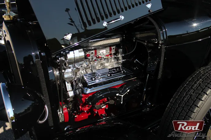The ’32 features a 327 ci Chevy/2×4 5-speed engine/transmission combo. Body and paint was handled by Brad Starks Rod & Custom, interior and audio by Recovery Room, and the wheels are from Real Rodders Wheels.