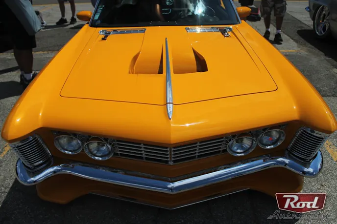 The bodywork and yellow paint job was laid on by the owner’s own business, Ron Sall Body Werx. The interior was worked over by Schoebers Interiors while Billet Specialties provided some jewelry in the form of a set of 5-spoke classic spinners. To top off this beauty Ron topped the engine off with Hillborn Fuel Injection.
