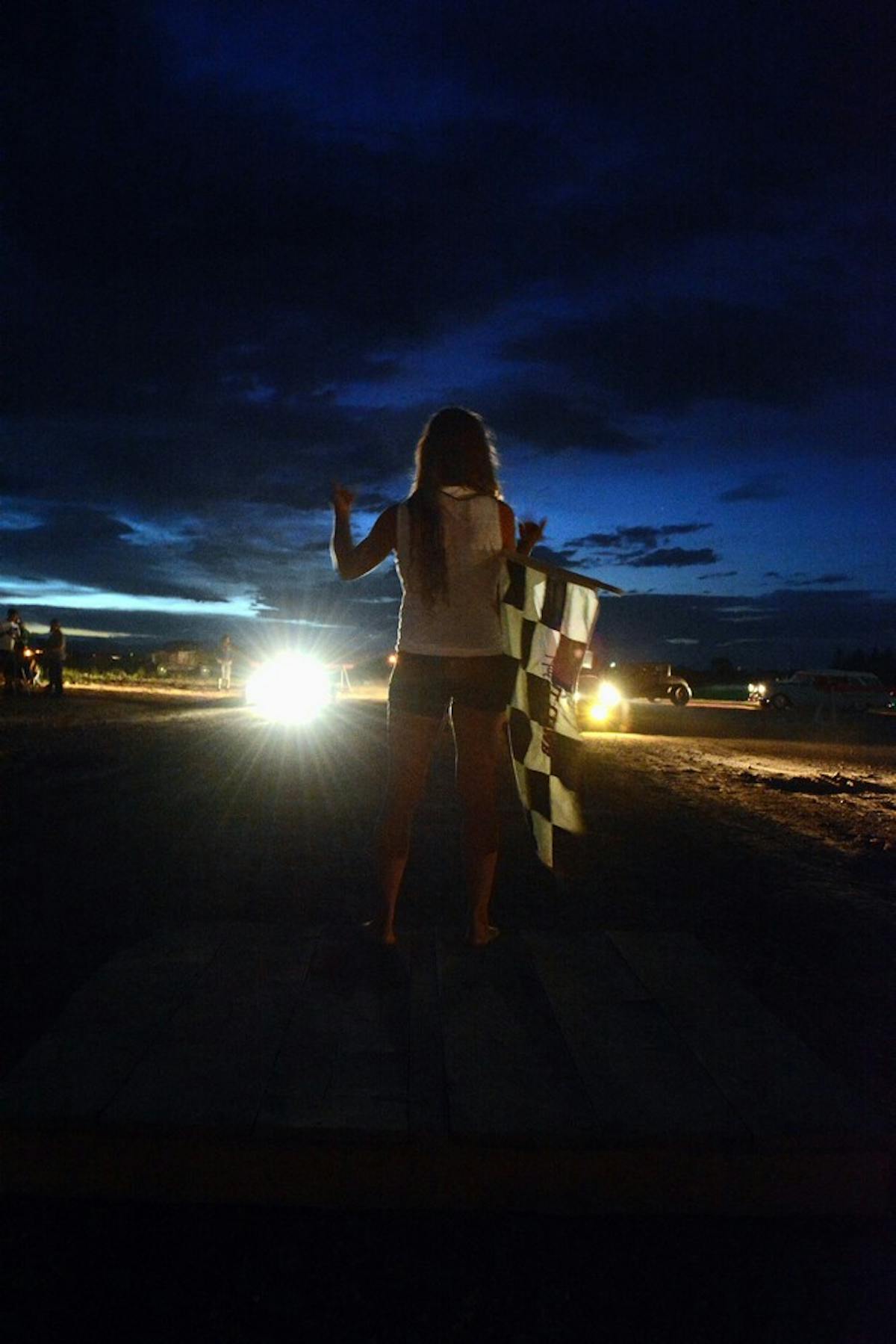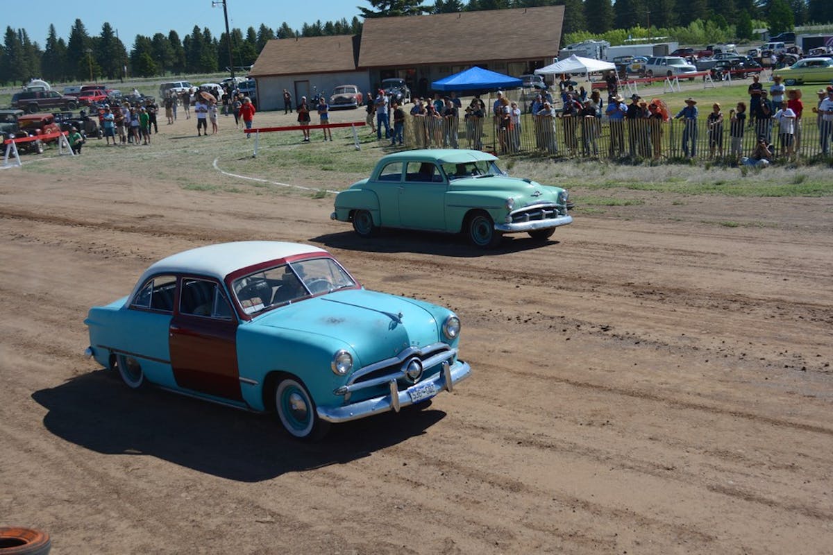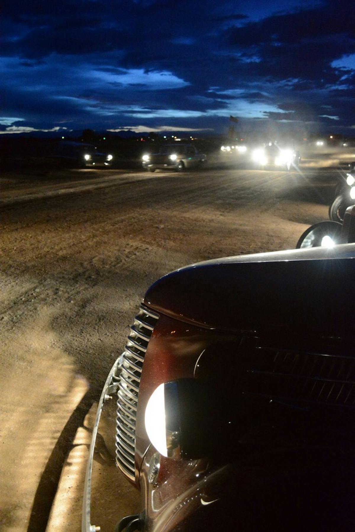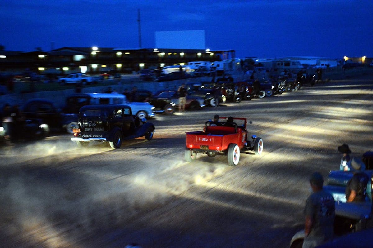While racing on the dirt is the biggest draw at the weekend event, there are also a few vendor booths to peruse, a classic car show held on the grass and classic movies played at sundown on the two-screen drive-in theater located just outside the hotel’s back windows. Late nights bench racing, looking over each others’ classic rides and enjoying a few adult beverages with great company are all part of the experience. Saturday night even offered a bit of sunset racing on the drag strip, lit only by the setting sun and headlights of vintage vehicles lining the track.