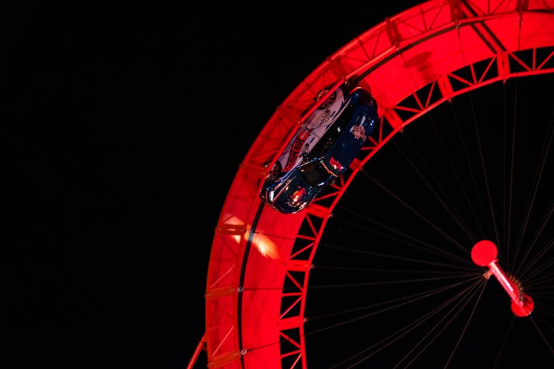 Starting with the elephant in the room, Hot Wheels put a giant stunt together in the middle of the track for driver Terry Grant. Before the trick, Grant mentioned if he completed the entire loop, he would set a new Guinness World Record as this was the largest ever built, standing at 64-feet tall. His vehicle of choice? A brand-new Jaguar F-Pace.