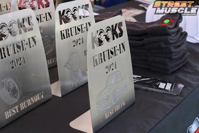I brought my six-year-old partner in crime with me on this occasion, which turned out to be a great idea. After grabbing some free swag from vendors and checking out all the cars, she headed to the bounce house to bounce to the beat of a DJ, checked out a few more cars we missed, and then grabbed some food from the food trucks. As her sugar high from the Kona Ice hit its peak, Kooks kicked off the burnout competition. And at long last, they handed out the awards. With so many Mustangs in attendance, the crew thoughtfully set up barricades to protect crowds from not only the burnout competition but when exiting the cruise-in as well. Local law enforcement ensured the organized hooning was confined to the designated area.