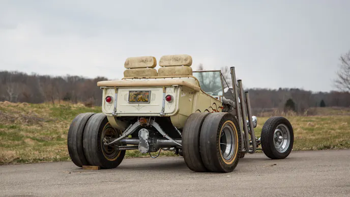 The same owner also offers “Kookie’s Kar,” a build that was started by Norm Grabowski in 1952, finished in 1955. It was nicknamed “Lightnin’ Bug” and is credited with starting the “T-Bucket craze” as it was built on a 1931 Ford Model A roadster chassis with the front half of a 1922 Ford Model T swapped in and it had a shortened back half of a Ford Model A pickup truck.