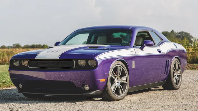 While both vehicles Vinatieri will offer are undeniable muscle machines, their age gap makes for an interesting mix. On the docket are a gorgeous gold 1968 Shelby and a 2013 Dodge Challenger.
