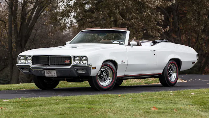 He has rounded out his collection this year with one more, a 4-speed 1970 Buick GS Stage 1 Convertible—the only known example in Glacier White with a Burnished Saddle interior.