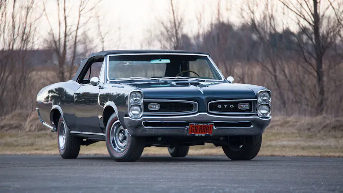 Guarise’s GTOs offer a snapshot of the model’s formative years. On the docket is a 1965 factory Tri-Power 4-speed GTO, a 1966 4-speed GTO with the upgraded WS-suffix Tri-Power engine, and a 1969 Pontiac GTO Judge, Pontiac’s iconic Ram Air III engine-equipped beast originally released to compete with Plymouth’s Road Runner.