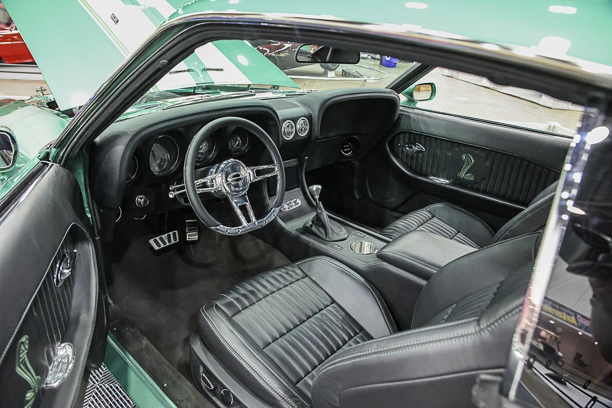 There are plenty of great custom touches all over Dannette Smieth’s Mustang. Straightline Customs worked the body over by tucking and narrowing the bumpers, along with moving the front lights. The Mustang’s wheel wells and firewall was also modified. Under the hood, the modern Ford engine is wearing a custom intake, and the radiator has its own handmade cover. Straightline also used CVF Racing hood hinges, a Lokar shifter, and Budnik steering wheel. Straightstitch Upholstery took care of the interior that’s filled with sound thanks to the JL Audio stereo system.