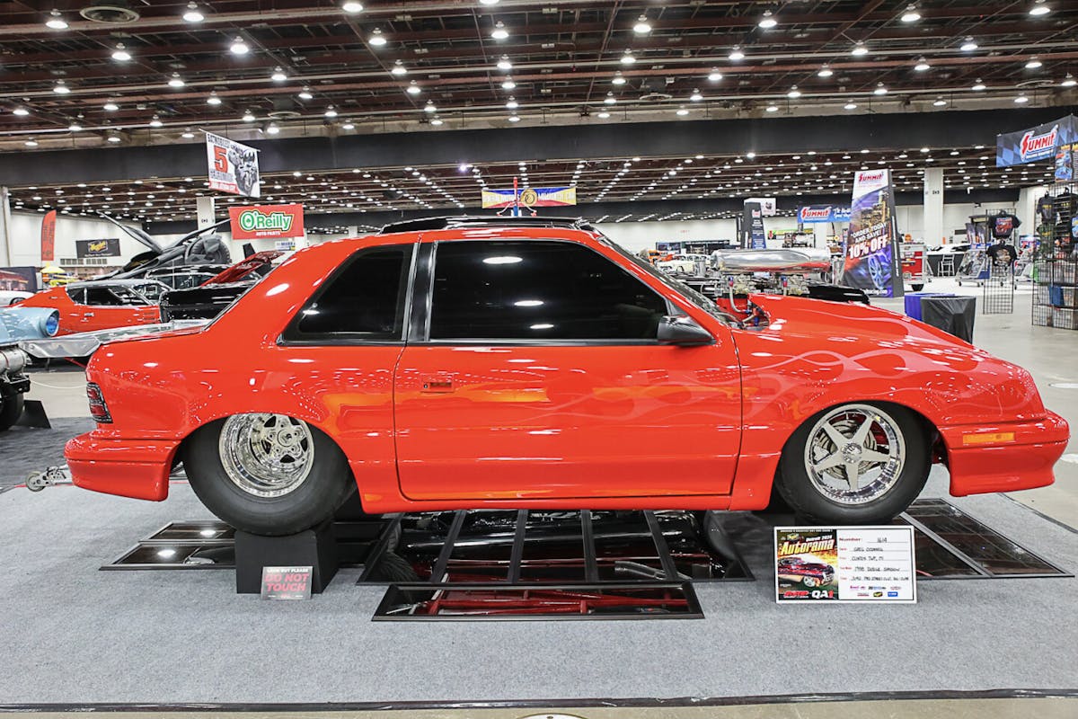 A 1988 Dodge Shadow didn’t come with a rear-wheel drive option, but Greg O’Connell solved that problem with his radical ride known as “Hot Stuff”. O’Connell’s Shadow rides on a Gebhardts Procar tube chassis and Strange Engineering 9” rearend. A set of WELD Racing wheels are wrapped in Mickey Thompson tires, and can be found at each corner of the car. Seat Works took care of the custom interior that rests on the tinwork from Gebhardts. A 528 cubic-inch Mopar engine powers Hot Stuff and is backed by a 727 TorqueFlight transmission.