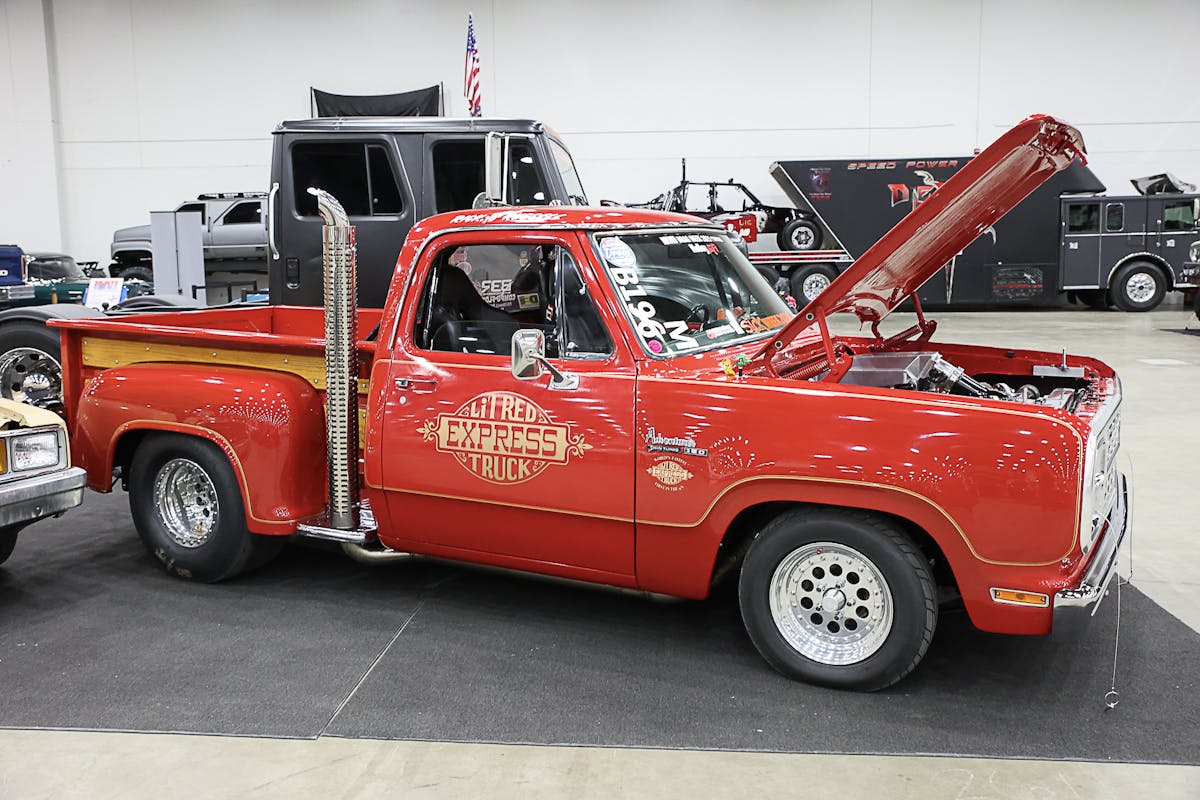 There are plenty of great custom touches all over Dannette Smieth’s Mustang. Straightline Customs worked the body over by tucking and narrowing the bumpers, along with moving the front lights. The Mustang’s wheel wells and firewall was also modified. Under the hood, the modern Ford engine is wearing a custom intake, and the radiator has its own handmade cover. Straightline also used CVF Racing hood hinges, a Lokar shifter, and Budnik steering wheel. Straightstitch Upholstery took care of the interior that’s filled with sound thanks to the JL Audio stereo system.