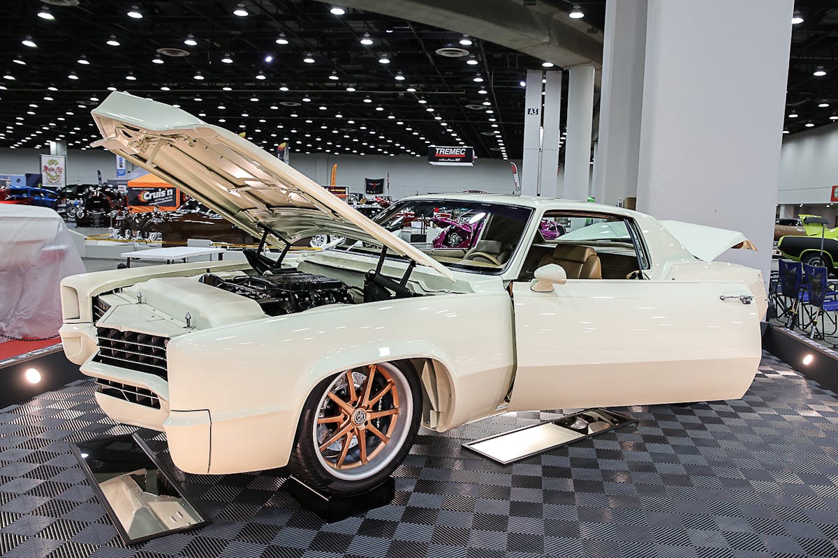 The 1967 Camaro that US 12 Speed and Custom built for Rocky Trozell has a subtle, but powerful look to it. The Red Devine paint works well with the matte bronze finish on the one-off Billet Specialties wheels. There’s plenty of Anvil Auto custom carbon fiber parts to be found all over the Camaro. The car is powered by a 525 horsepower 6.2-liter LS engine that’s backed by a TREMEC transmission. Interiors by Ed crafted an outstanding space inside the Camaro that features products from TMI.