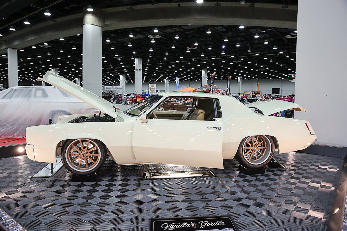 If you didn’t know any better, you’d think that David Blattner’s “Vanilla Gorilla” 1967 Cadillac Eldorado was just rocking some nice wheels and basic body modifications. Well, you’d be very wrong, the Vanilla Gorilla has been heavily modified and packed with modern technology. The body of the Cadillac had two feet chopped off of it to start with. A custom Roadster Shop chassis was made for the shortened body to ride on. Under the hood, an LT4 engine was bolted into place to provide horsepower. If Cadillac was going to make the CTS-V in 1967, it would have looked like the Vanilla Gorilla.