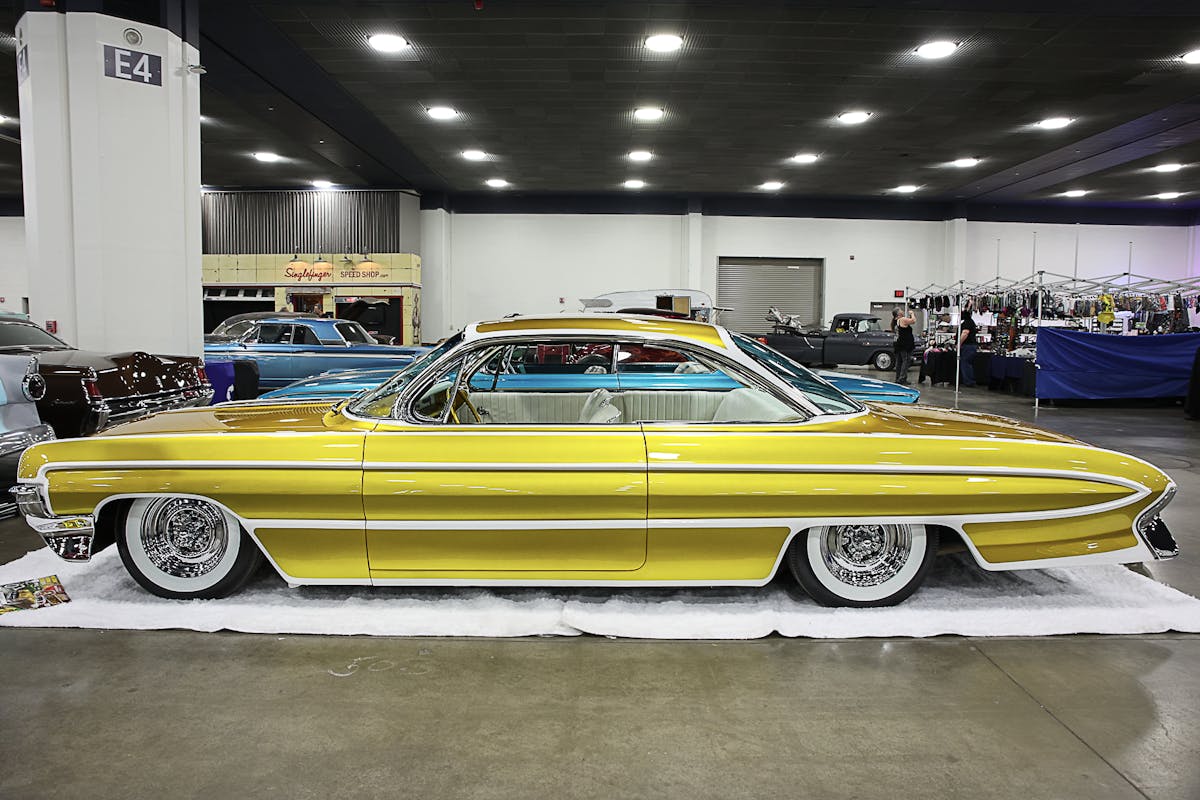 If Bruce Wayne needed a cool luxury car to drive, he’d jump behind the wheel of Randy Kohltfarber’s 1959 Chrysler 300E. Randy’s version of this car is called the “Chrysler 1000X” and it was built by American Legends. The Chrysler 1000X has numerous body modifications including a 1.5” wedge chop, custom A-pillars, a 2” roof stretch, a scratch-built cowl panel, and so much more. A custom Roadster Shop chassis was created for the car. The BASF Glasurit was sprayed by James Evans.
