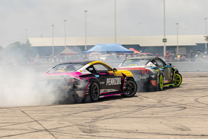 There were drifting ride-alongs on Thursday with Vaughn Gittin Jr. and Ben Hobson, monster trucks and drifting under the lights, fireworks, and a burnout contest.