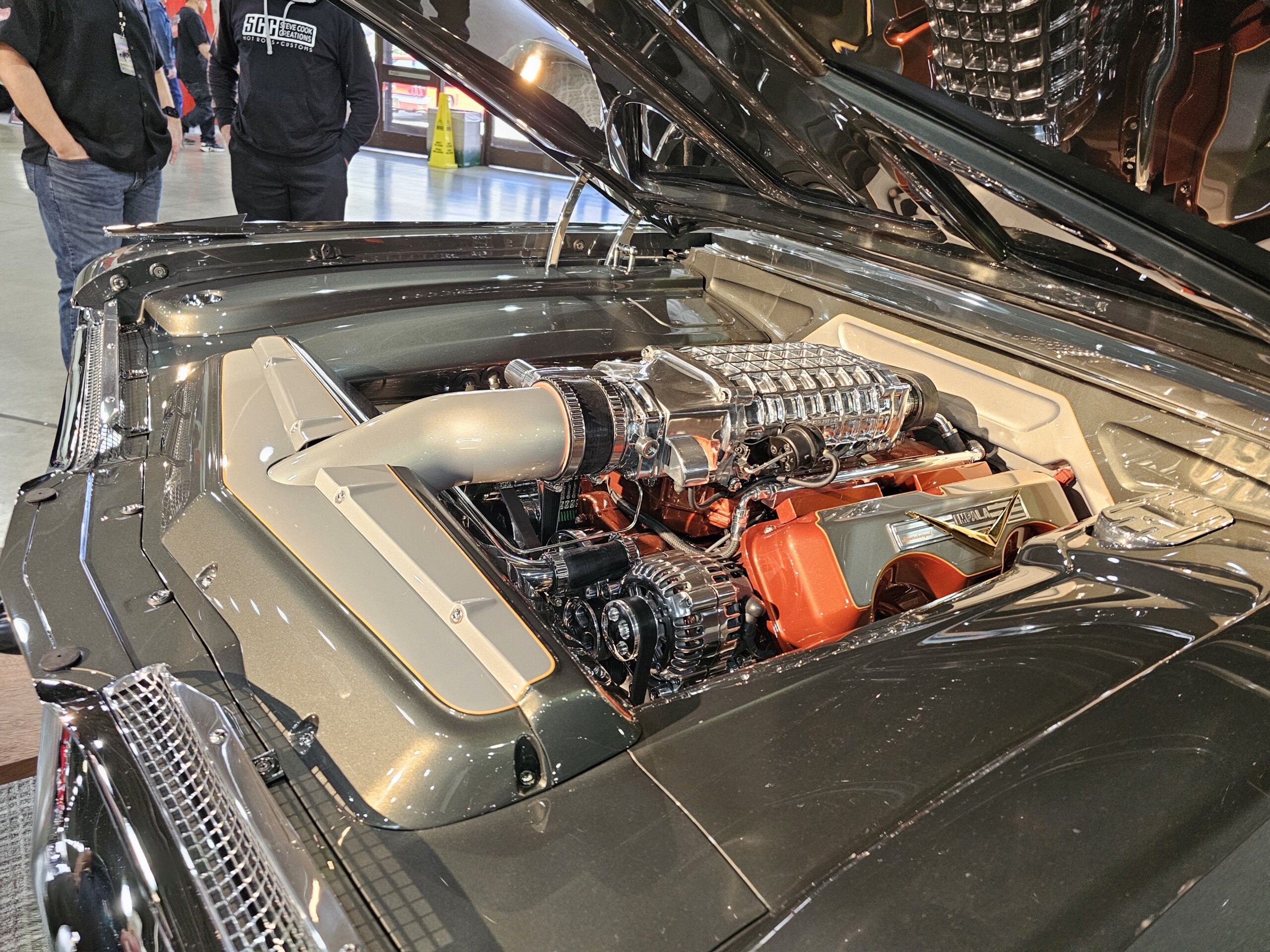 Cooked up by Steve Cook Creations, the Impala features a big cube LS3 motor built by Don Hardy mounted on top of a Roadster Shop chassis. Despite its outrageous factory styling, many tweaks were made to the sheet metal. The batwing beauty has been modified with raised front wheel openings, lengthened body lines, a custom aluminum hood, custom-built front and rear valances, custom side-and-quarter-panel trim, and flush headlight and taillight bezels.