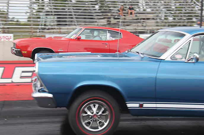 As sure as crisp fall air, each September you can depend on the Mid-Michigan Motorplex in Stanton, Michigan, to host around 120 of the nicest muscle cars you will ever see. We’re talking about the Pure Stock Muscle Car Drags, an event where the most valuable cars of the super car era are not behind velvet ropes, but burning rubber on the drag strip — just like God and John DeLorean intended.