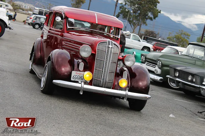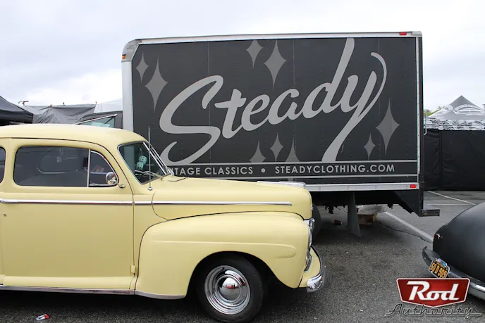 With a full pot of coffee, two thermostats of bold and black, camera cradled under jacket, and a quick stop in Carson, California for some Chorizo breakfast burritos Rod Authority was off to the Irwindale Speedway ready to see how attendees and exhibitors were feeling about the rain.
