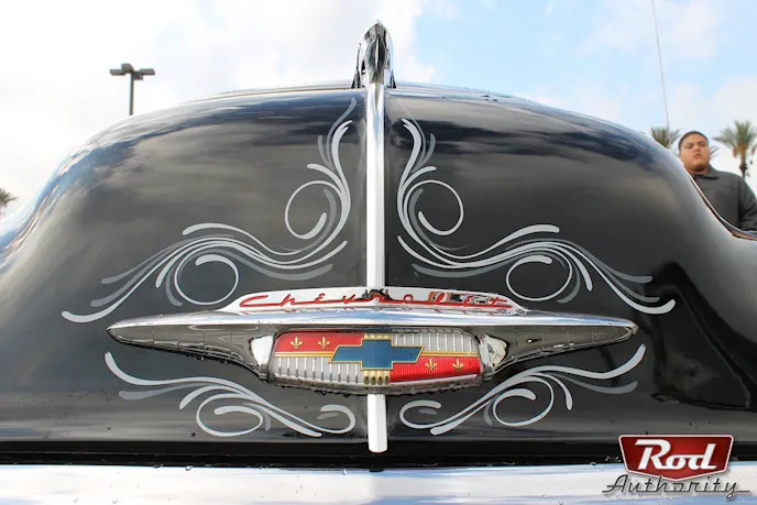 Another show standout was this ’57 Star Chief that we first caught site of at last year’s Ventura Nationals. This ’57 owned by Jack and Debi of the Mercifuls Car Club is definitely what we call a year ‘round beauty–she sits pretty as you’d expect in summertime and glows magnificently in the revealing light of winter.