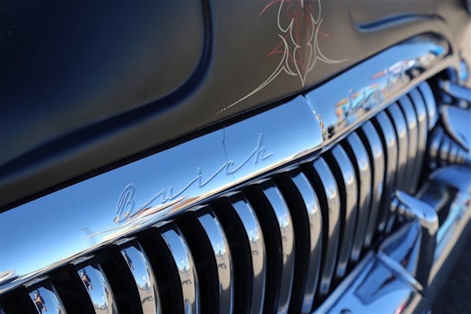 The roof is painted a Kandy Apple Red with mini flake, courtesy of House of Kolor. The black and red paint help to complement each other, creating a strikingly appealing Buick that is far from ordinary. Moving inside of the car, a Vintage Air and heating system is coupled with a Custom Autosound stereo with audiophile Infinity speakers.