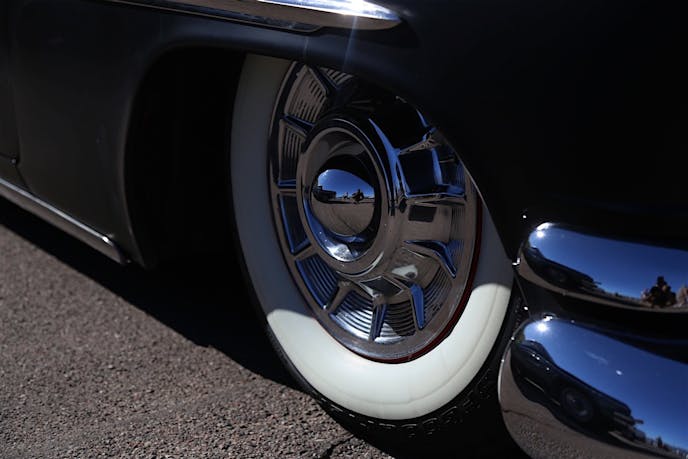 It rides on a set of BF Goodrich Silvertowns, adorned with hubcaps off a 1957 Cadillac. A Ron Davis custom radiator with a Mark VIII electric fan keeps everything cool in the Buick. “It will idle or run all day, even with the air-conditioning on in the summer, and still not get over 190 degrees Fahrenheit,” the couple said.