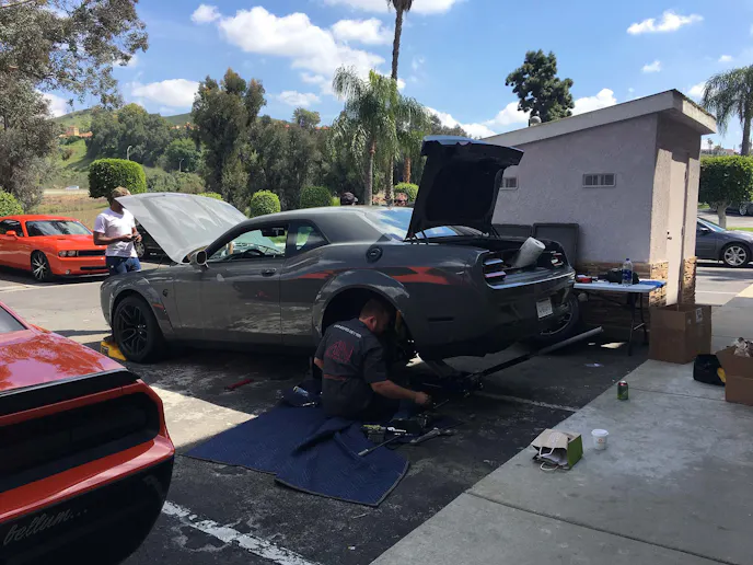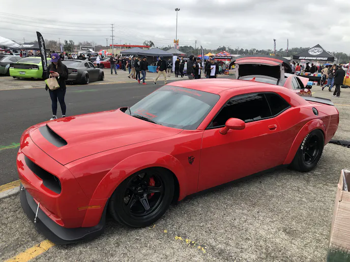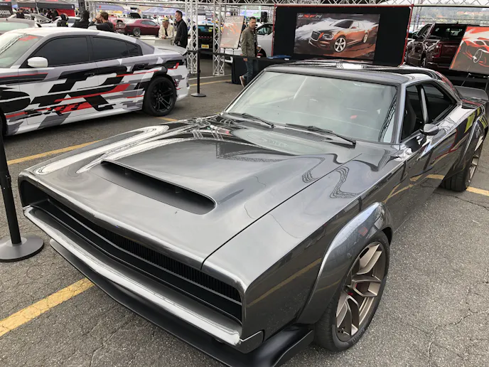 After a light lunch with some friends, I headed over to Saturday’s show venue, where Fiat Chrysler Automobiles was holding their Friday media day event. There was quite a bit of excitement on hand, as Hellcats and Demons were being tuned on the quarter-mile drag strip for the Dodge Thrill Rides to be given to showgoers on Saturday, and Hellcat Charger and Challenger drift cars were also being dialed in.