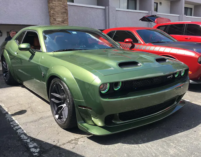 A nice surprise in the Doubletree parking lot was to see my first Dodge Challenger Hellcat Redeye Widebody in person, a lovely F8 Green on Sepia interior example owned by Tom Ledoux, who drove the car on its maiden road trip from Pearland, Texas, on the outskirts of Houston. The car was loaded with options, and Tom had already performed some light modifications such as painting the front splitter and rear valence body color, adding green halos to the headlights and outfitting the car with F8 Green seatbelts. A very nice car.