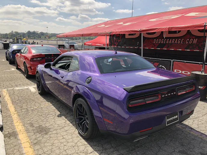After spying the majority of the cars on display, I ventured over to the drag strip where Dodge was giving spectators thrill rides in a cadre of Hellcats and Demons. I stayed for a few passes, standing near the quarter mile trap. Some serious times were being set there including some sub 10-second runs by a screaming Dodge Challenger Demon.