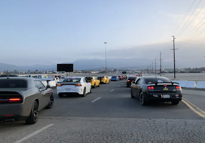 Saturday morning started off early for me, as I met my club, Challengers Unlimited at a predetermined spot at 6:30AM and we rolled to the Speedway together in a caravan. Beautiful, if not a tad nippy weather greeted us as we arrived at the festival site, and joined the lengthy cue of cars lined up to get in.