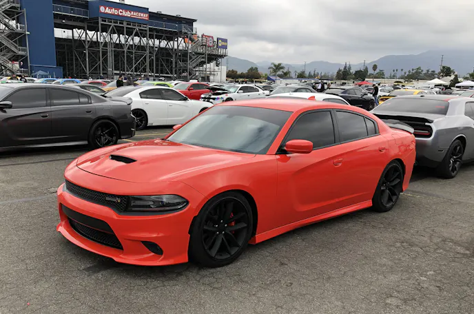 Another Charger Scat Pack was close by, wearing Go-Mango paint that made the car look as if it was going 100 mph standing still. A great color for modern Mopar muscle cars.