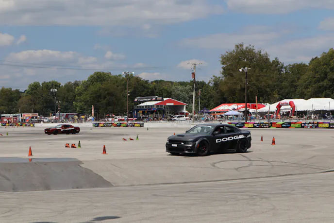 Dodge’s thrill rides at Moparty are always a massive draw for the thousands in attendance. The line extends for what seems like miles as the adoring Hellcat fans wait patiently for their turn in the passenger seat of a slippling, sliding, screaming Hellcat. If you’re unfamiliar with what Dodge thrill rides are all about, allow us to break it down for you, Barney-style.
