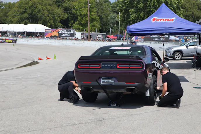 The Dodge Thrill Rides were going off all weekend long. The tire change crew definitely got their reps in.