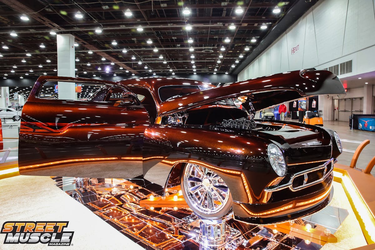 If you’re going to name a car Maximus, it better be something special, and the team at Pro-Comp Custom did just that for Luigi Deriggi. The Mercury that Deriggi brought to the Detroit Autorama is a dream build wrapped up in a sexy shade of Candy Root Beer. Pro-Comp Custom skillfully set the 1950 Mercury body on an Art Morrison chassis that rides on a custom Air Ride suspension. Paul Atkins put together a one-off interior that includes a Sparc Industries steering wheel.