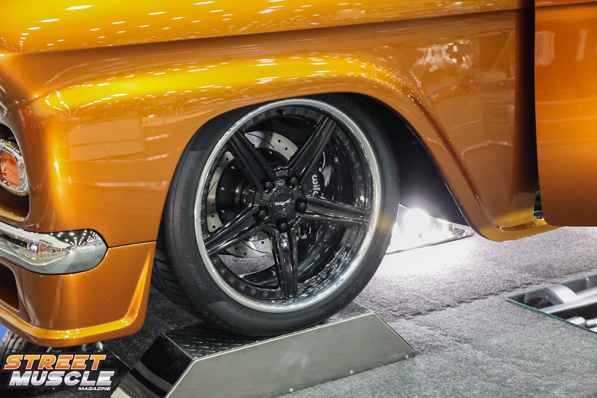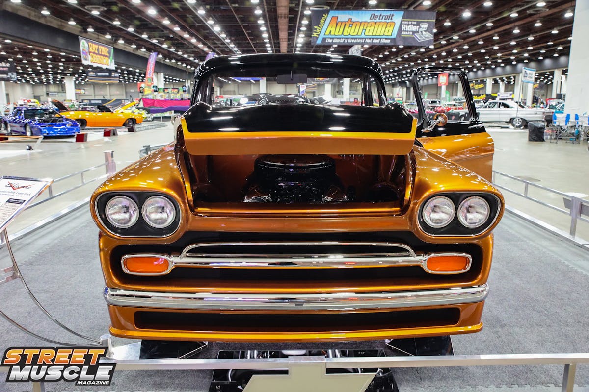 Chevrolet never produced an ElCameo, but that didn’t stop Jim McDaniel and Dave Kindig from dreaming one up. The ElCameo is based on a 1958 Chevy truck that was heavily modified by Hot Rod Construction. A custom Art Morrison chassis with a full coilover suspension serves as the foundation for McDaniel’s truck. Hot Rod Construction did some heavy-duty customization work to the truck, including some sectioning, pie cutting, and pancaking to create the unique look of the ElCameo. The PPG Vibrance Collection custom Copper paint and black along with the Billet Specialties B forged wheels give the truck a signature look.