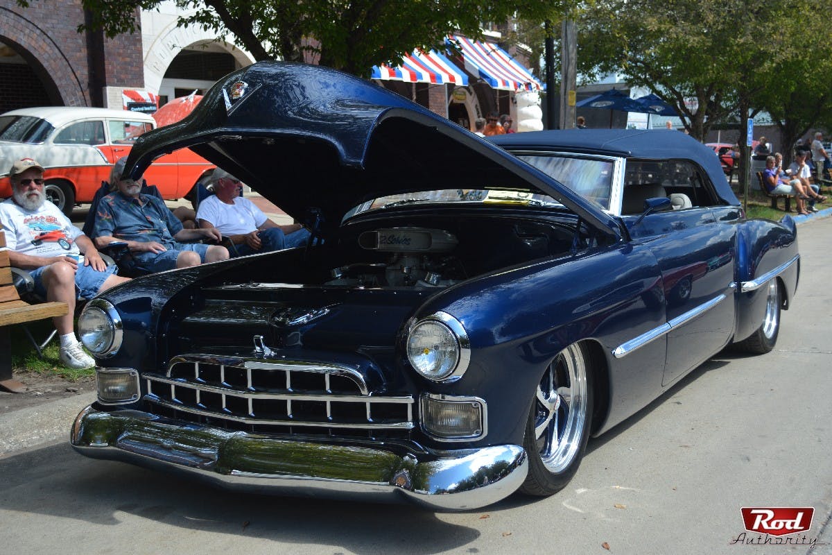 The metal was beautifully finished in dark blue, which coordinated perfectly with the folding dark blue top. This gorgeous 1948 Cadillac 62 Series convertible traveled more than four hours from Buffalo, Minnesota, to make its appearance at the 26th Heartland Nationals. Decked out with a completely upgraded and off-white interior, you’ll find plush, adjustable bucket seats, a modern center console, and white leather-wrapped steering wheel.