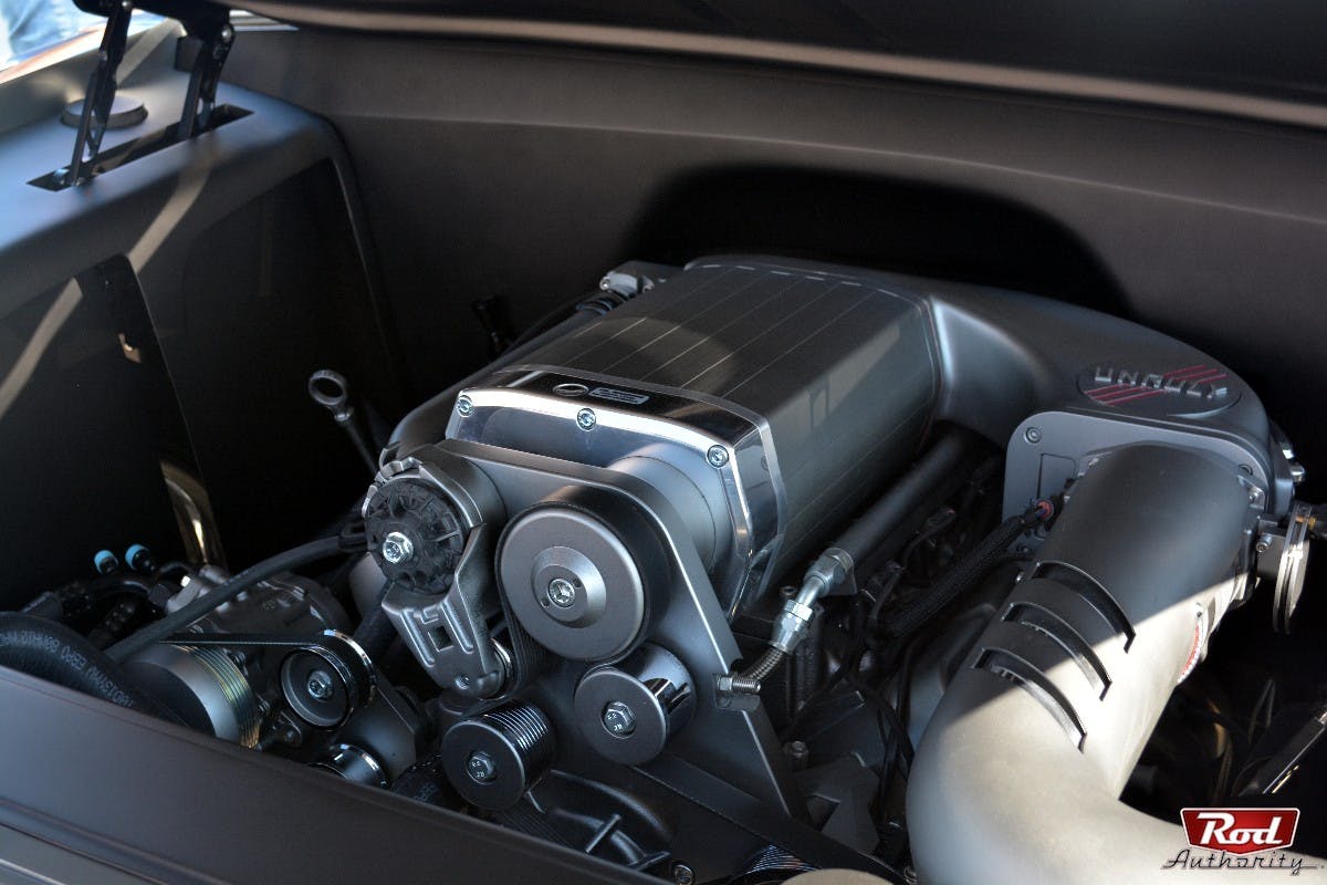 Planting the car to the ground are 17-inch front and 20-inch rear Foose five-spoke wheels wrapped in 205/45/ZR17 and 315/35/ ZR20 Michelin Pilot Super Sports respectively. Other modern features on the car include a coilover-bsupported suspension system, disc brakes, and a stout rearend.