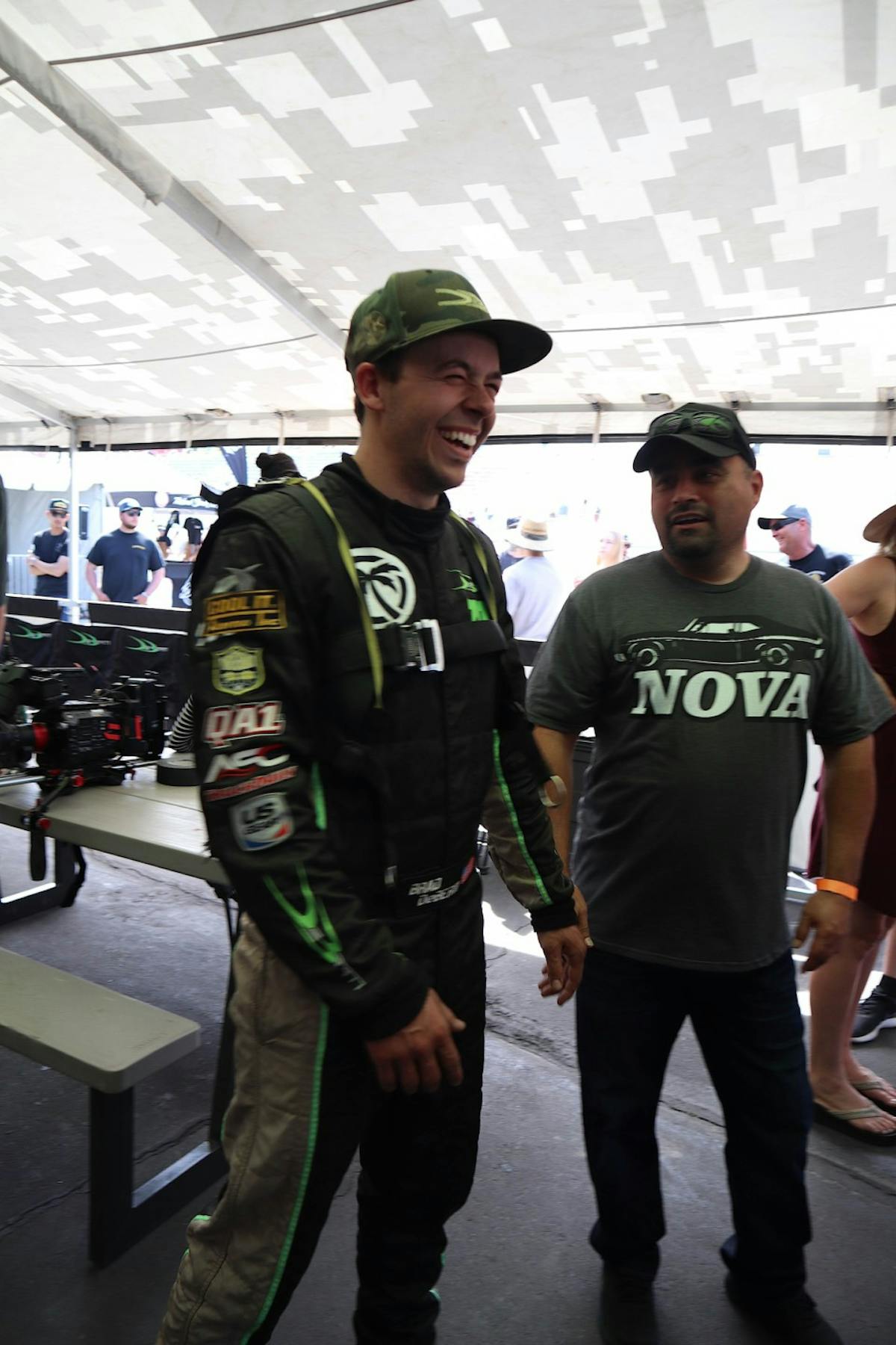 Brad couldn’t have been in better spirits. If you have seen him on television, you know he has more energy than a jackrabbit on 5-Hour Energy. That’s not an act – he was every bit as jovial in person. With his signature smile reaching ear to ear, he slid his 1,000 horsepower drift truck around the steep banks of KCRP, right alongside his cohorts, Jimmy Burnouts, and Blake Wilkey.