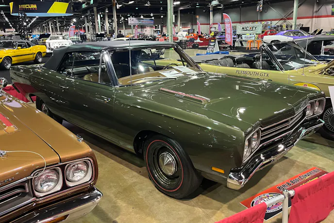 1969 Plymouth Hemi Road Runner — Motor Trend magazine awarded the Road Runner its Car of the Year award for 1969 for many reasons. With the addition of a convertible for the new model year, sales surged across the whole Road Runner line, and the option books were wide open to dealers and consumers to order whatever they wanted. This example in F-8 Ivy Green Poly, black top, and tan Interior was another great looking example.