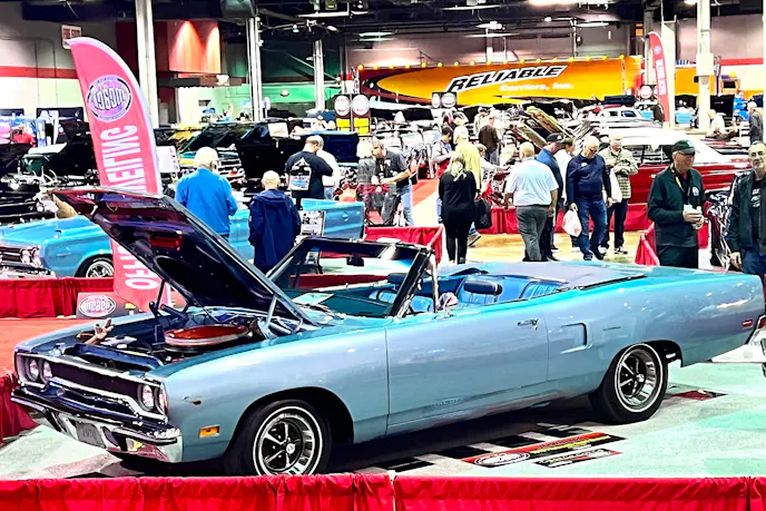 When the annual Muscle Car and Corvette Nationals (MCACN) blows into the Windy City, it brings with it a myriad of hot rods, barn finds, classic iron, and an opportunity for the faithful to reconnect with old friends. While virtually all makes and models of Detroit’s fabled high-performance machines occupy every inch of the massive Donald E. Stephens Convention Center, it’s the rare, unique, and somewhat historical Dodge and Plymouth convertible muscle cars blazoned with scoops, spoilers, stripes, wild graphics, and retina-burning bright colors that tried to steal this year’s show.