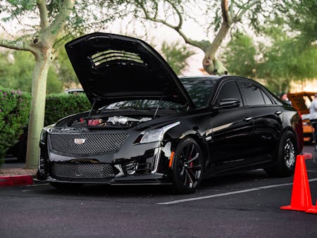 I saw plenty of cars with slicks and exhaust that still had paper plates. One of the cars that stuck out to me was a new 2018 Cadillac CTS-V already equipped with three-piece Weld wheels and Mickey Thompson rubber.