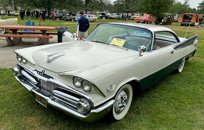 Not far away was another fabulous boulevard cruiser from the Eisenhower era. Patrick Frano’s 1959 Dodge Coronet was dressed in XX-1 Pearl white paint with CC-1 Star Sapphire accents over a white and blue interior, and gloriously represented a true survivor from the era of chrome and tail fins.