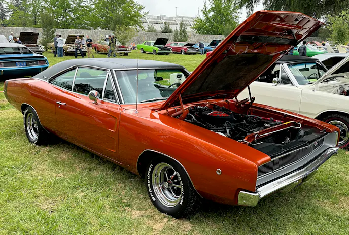 Another Coronet captured my attention elsewhere on the show field, but this one was ten years older, born right in the heart of the muscle car craze. Bob Glaspie’s ’68 Coronet R/T was a very rare car. It featured the original, numbers matching, factory 426 Hemi and three-speed TorqueFlite that it left the factory with, one of only 219 such examples built that way.
