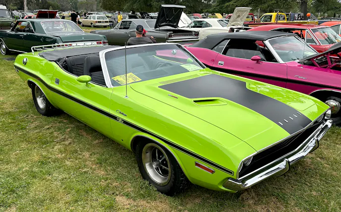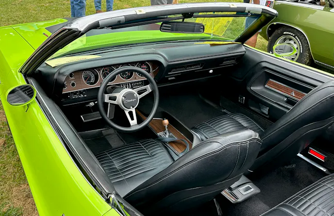 Representing the Challenger side of the E-body coin for me was a standout 1970 R/T convertible. Painted in eye-popping J5 Lime Light green with black graphics over a black interior, this car was an absolutely magnificent testament to the aesthetics everyone wanted at the zenith of the muscle car era.
