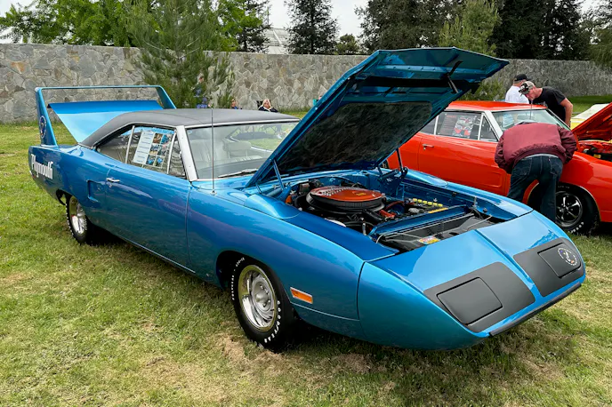 The Spring Fling has always been renowned for the number of winged NASCAR homologation cars it attracts every year, and this time was no different. A half dozen ’69 Daytonas and ’70 Superbirds were on hand. While each of these splendid machines deserves a mention, for my money the standout car in this group had to be Greg Vidmar’s Plymouth Superbird.