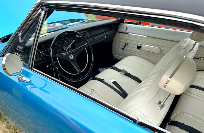 Flawless and striking in B5 Blue with a black vinyl top and a white interior, I found myself circling the car for quite a while, unable to take my eyes off it. The subject of a full rotisserie restoration that was completed in 2022, this numbers matching ‘bird was proudly displayed with its 440 Super Commando for all to see.