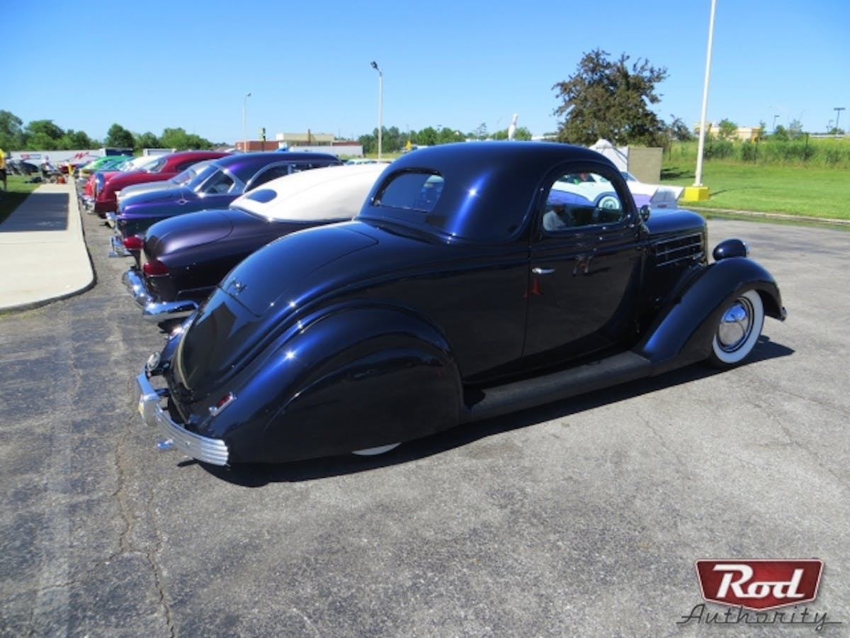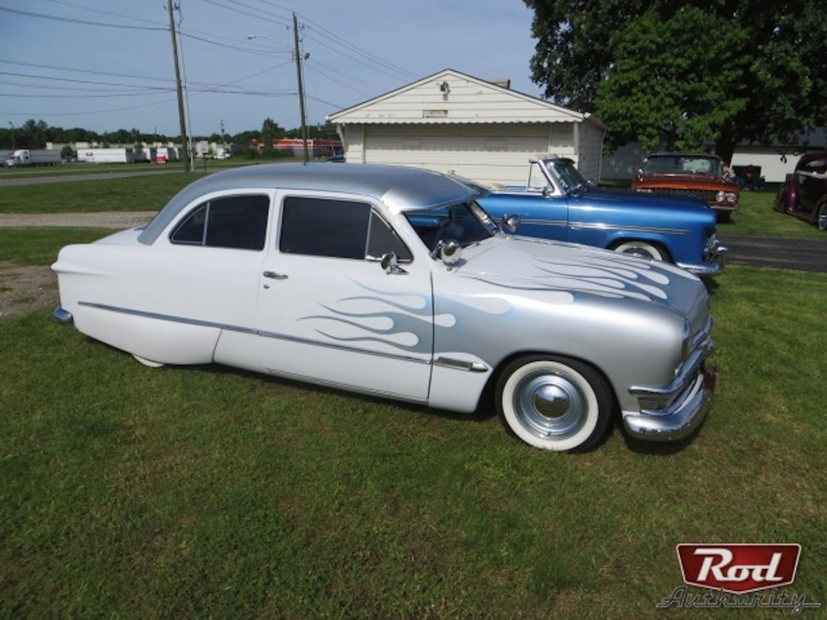 “Rod and custom shows around the country in the past few years are just not ‘custom oriented,’” Kevin pointed out to us on that warm June 14th Saturday in Indianapolis while standing next to his custom–a stunning Cobalt Blue chopped ’50 Mercury. “There simply aren’t enough customs at those shows. Custom guys are tired of parking next to near stock Mustangs and 1966 Chevelles. We want to see other customs, want to hang out around custom guys, talk custom cars, and reminisce about the past when it seemed every close friend/pal owned a custom.”